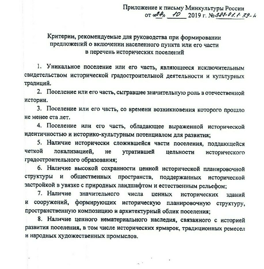 Критерии, рекомендуемые для руководства при формировании предложений о включении населенного пункта или его части в перечень исторического наследия
